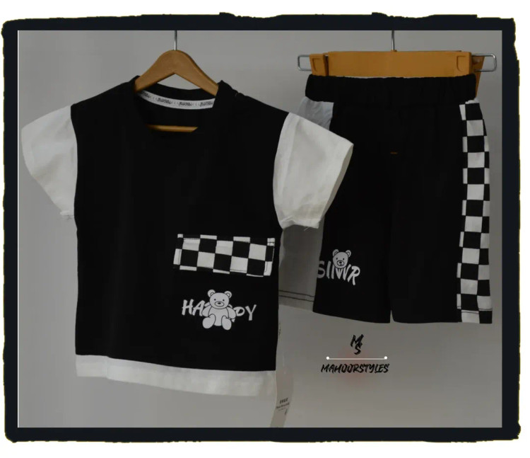 ست اسپرت وارداتی استین کوتاه همراه شلوارک رنگ سفیدمشکی