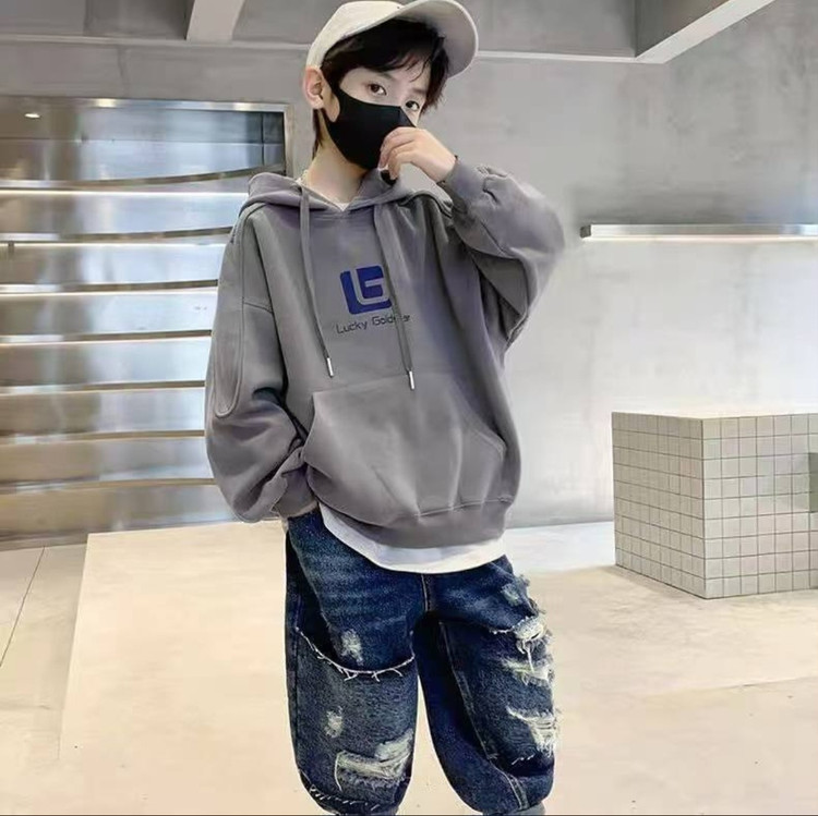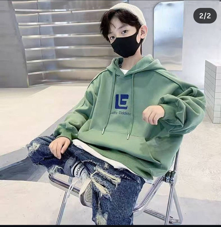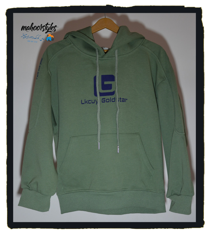 هودی پنبه ای وارداتی دو رنگ سبز و طوسی سایز ۱۳۰